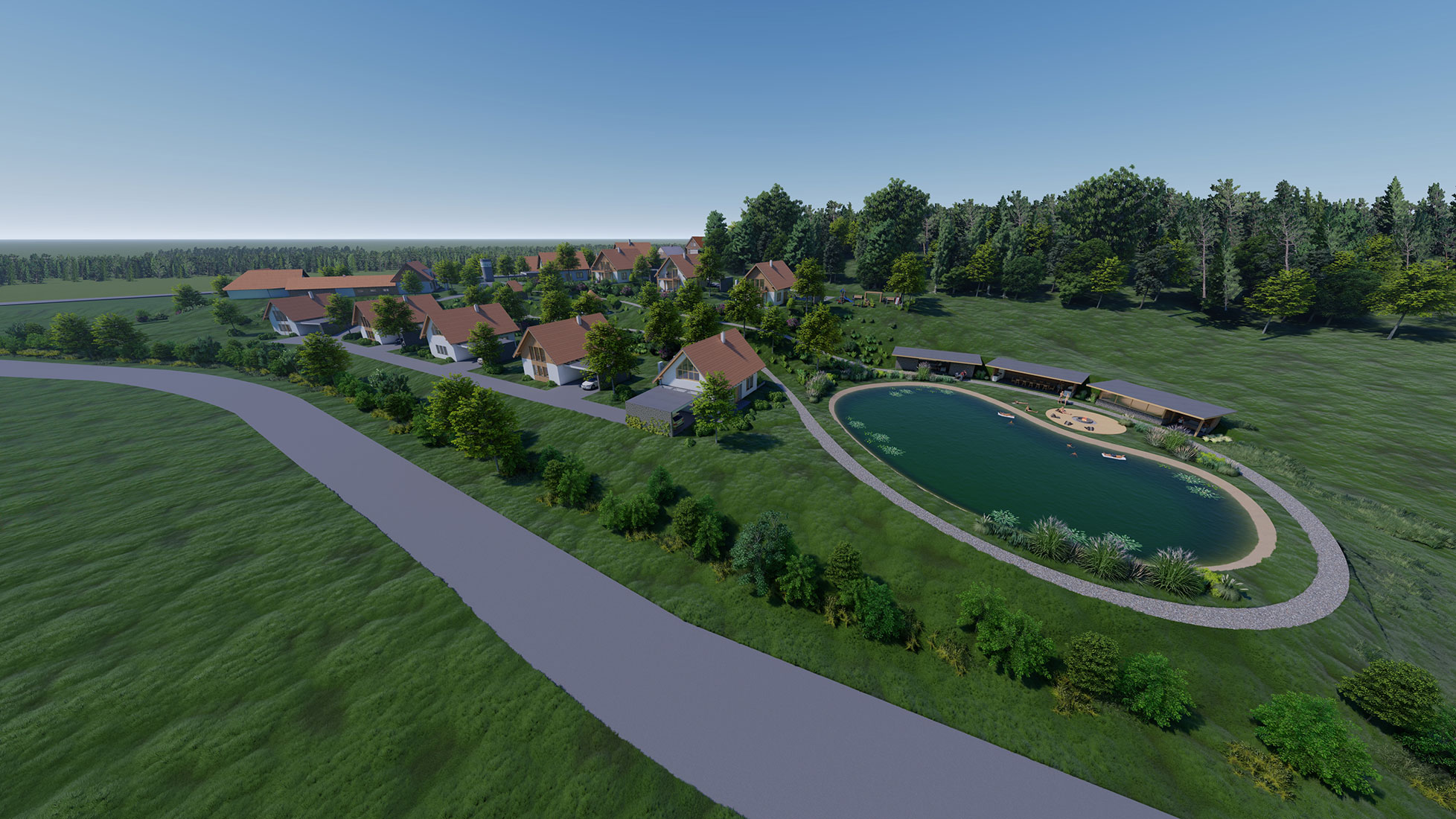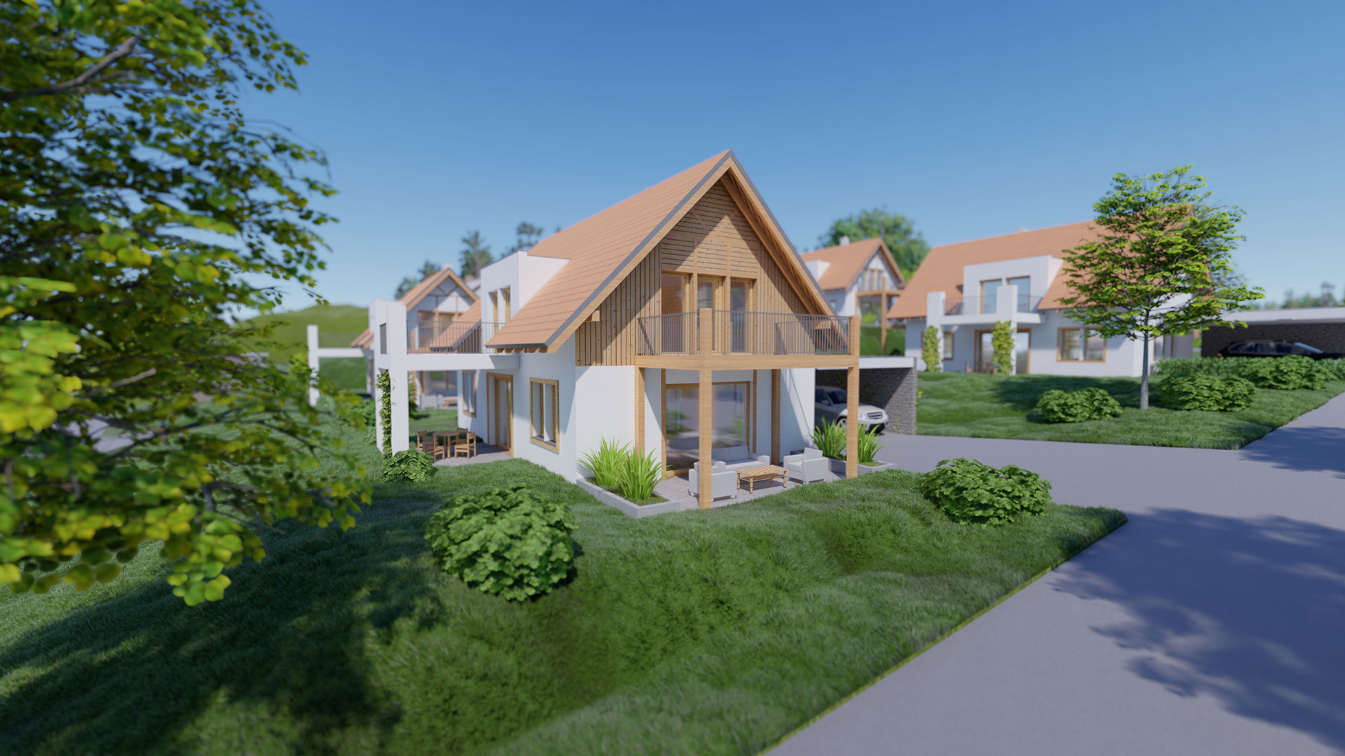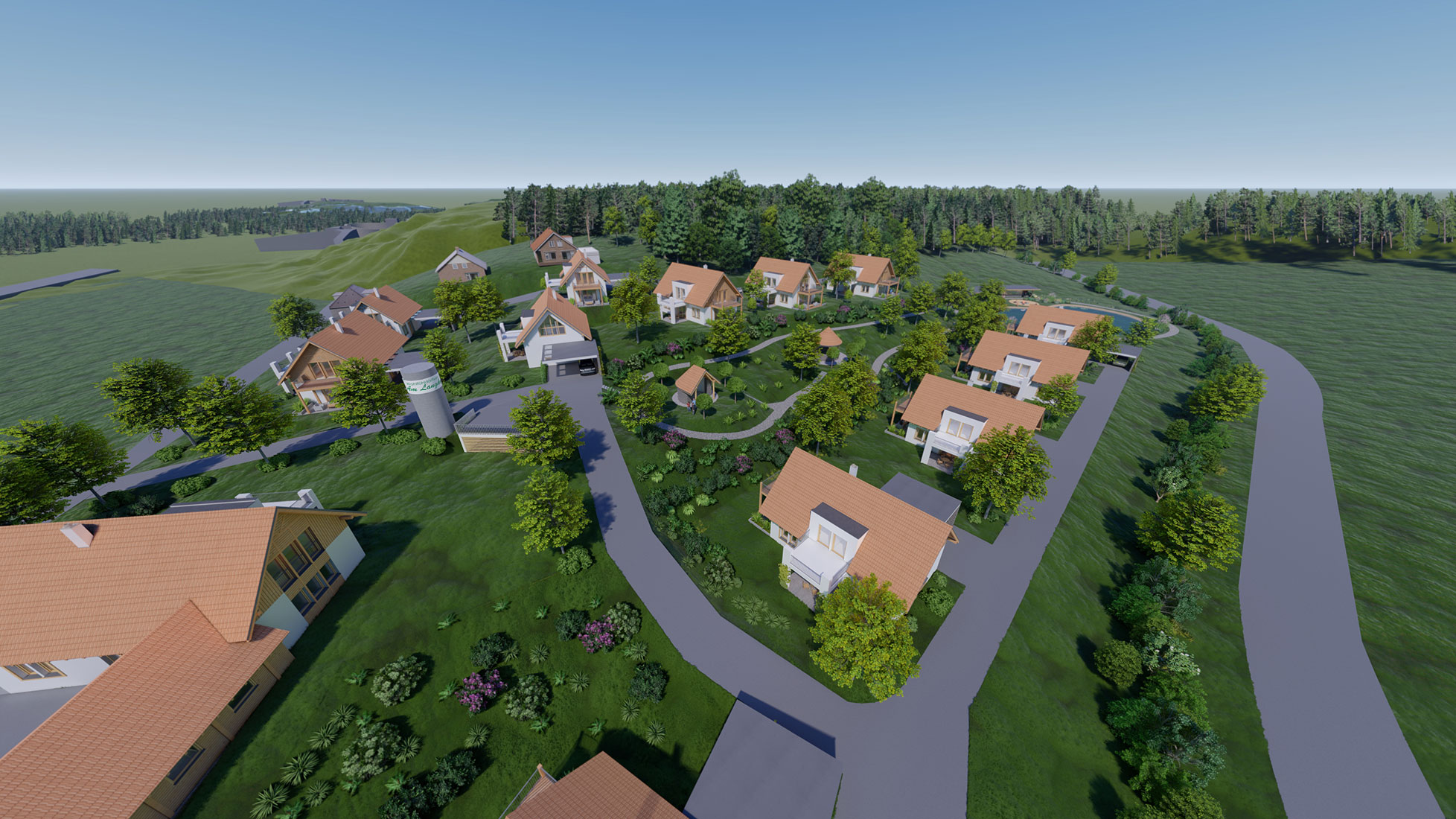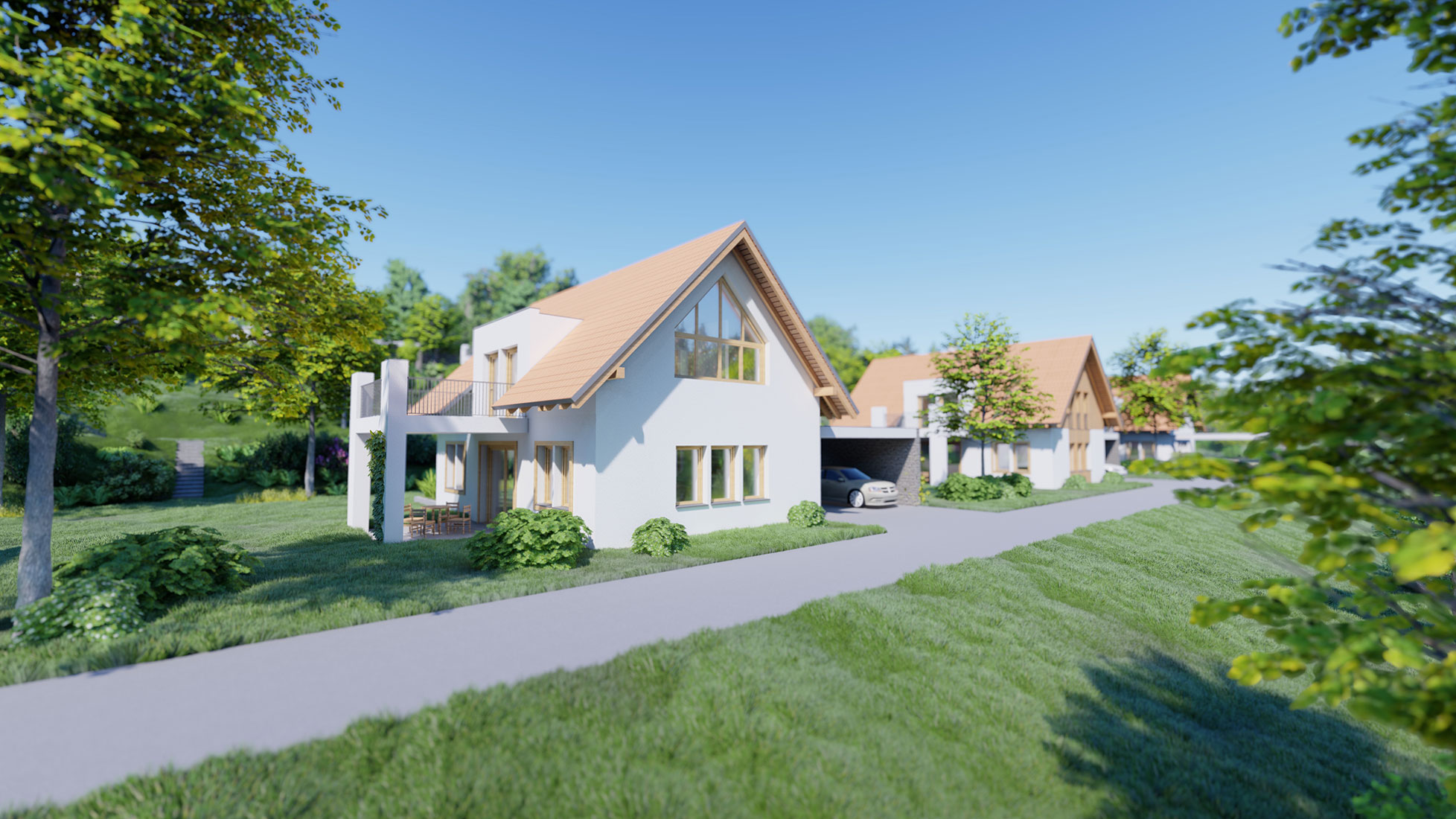 Am Langhof entstehen 12 neue, moderene Einfamilienhäuser mit einem gemeinsamen Schwimmteich, Sauna und Spielplatz für die Kinder.