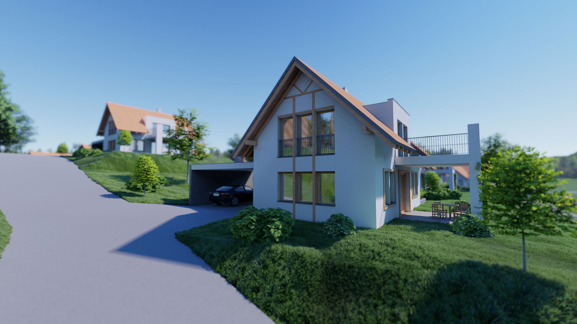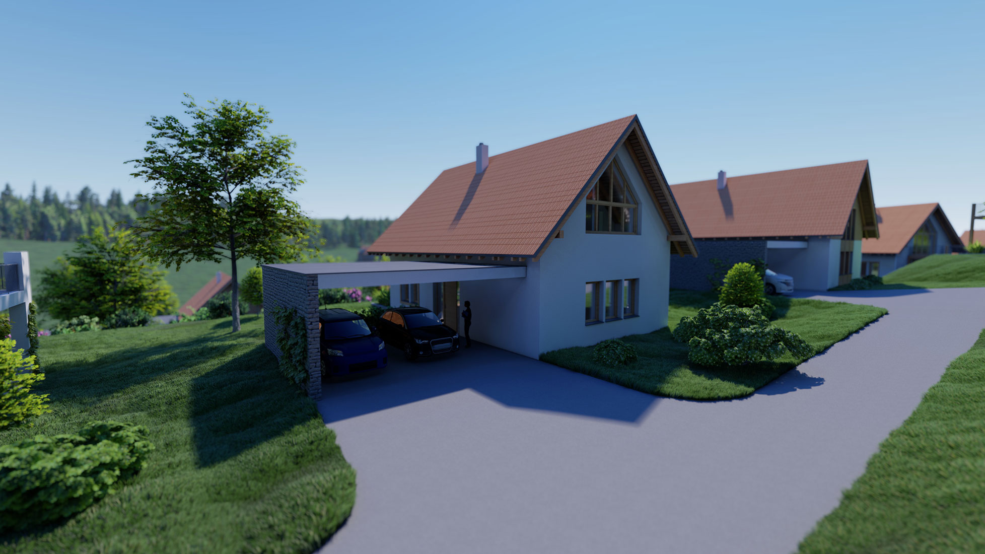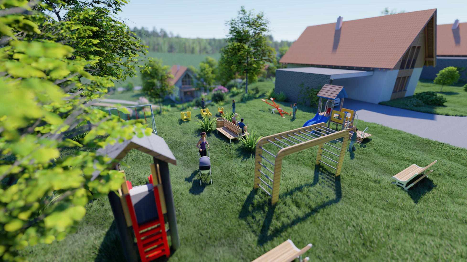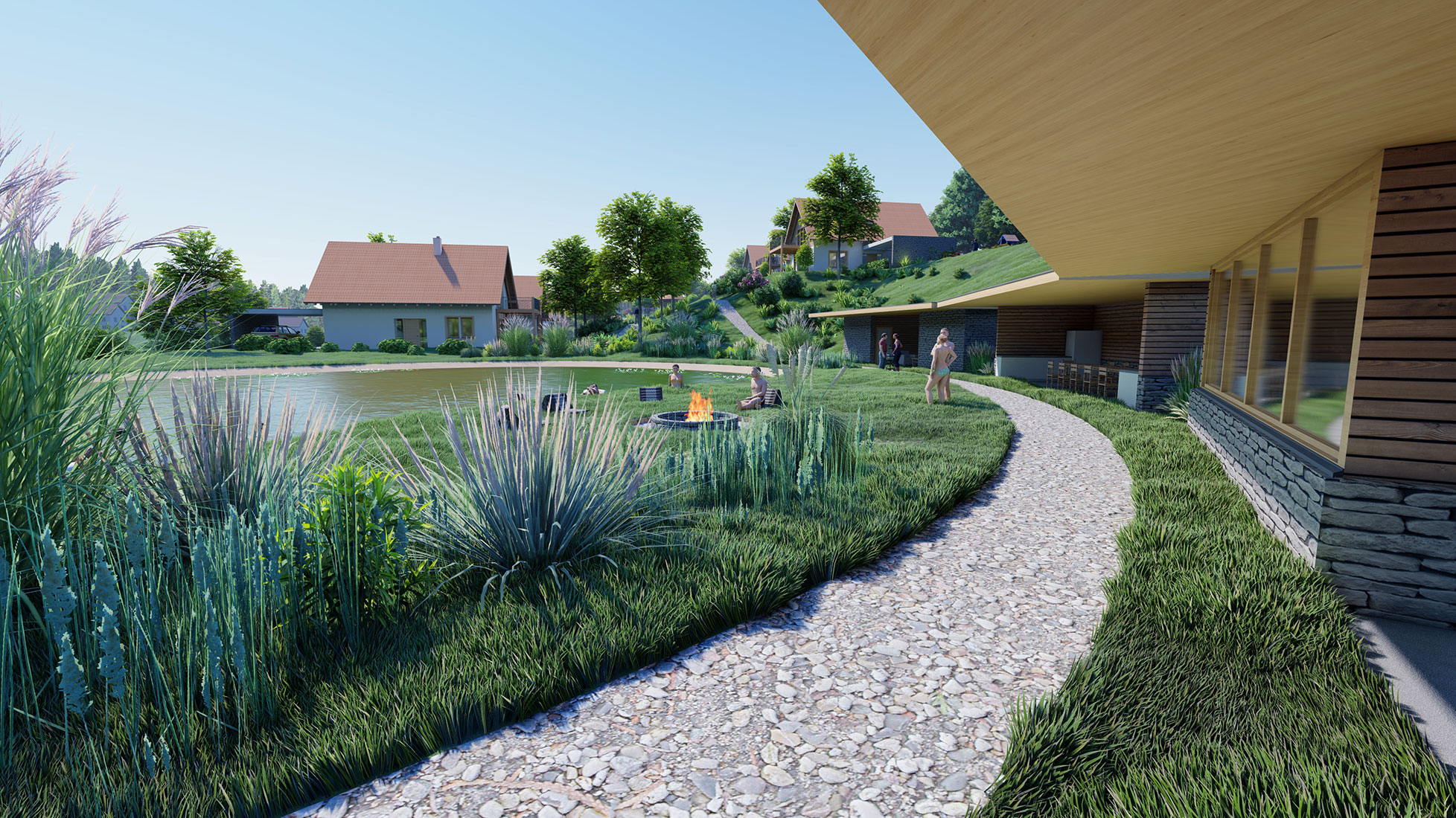 Am Langhof entstehen 12 neue, moderene Einfamilienhäuser mit einem gemeinsamen Schwimmteich, Sauna und Spielplatz für die Kinder.